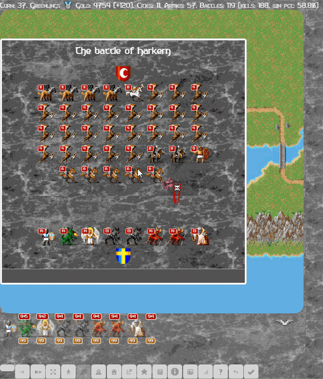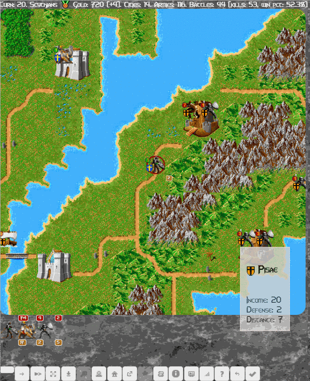 The most important unit is the Hero since he can single handedly turn a losing game around. He gains experience through fighting, exploring ruins and completing quests. Leveling up heroes leads to increased strength, battle bonus and better movement. Experience is not the only reward though, as special units (dragons, demons, what have you) might also join your hero.